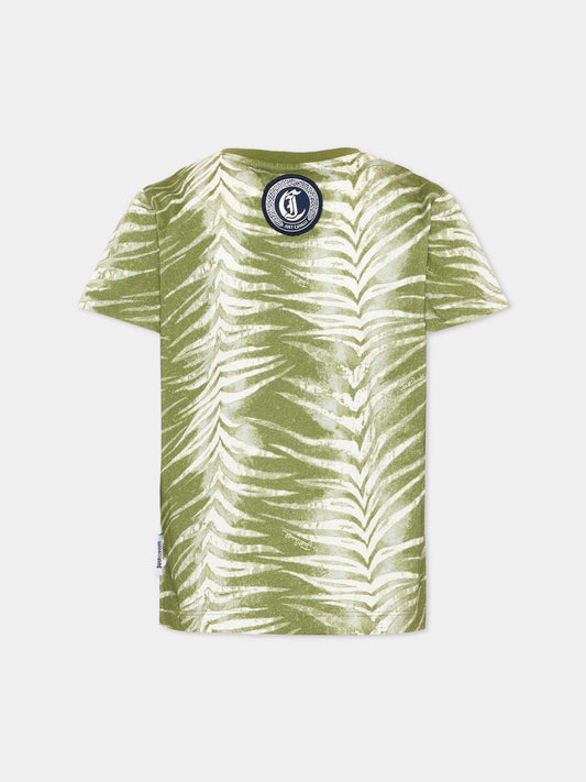 T-Shirt verde per bambino con stampa zebrata