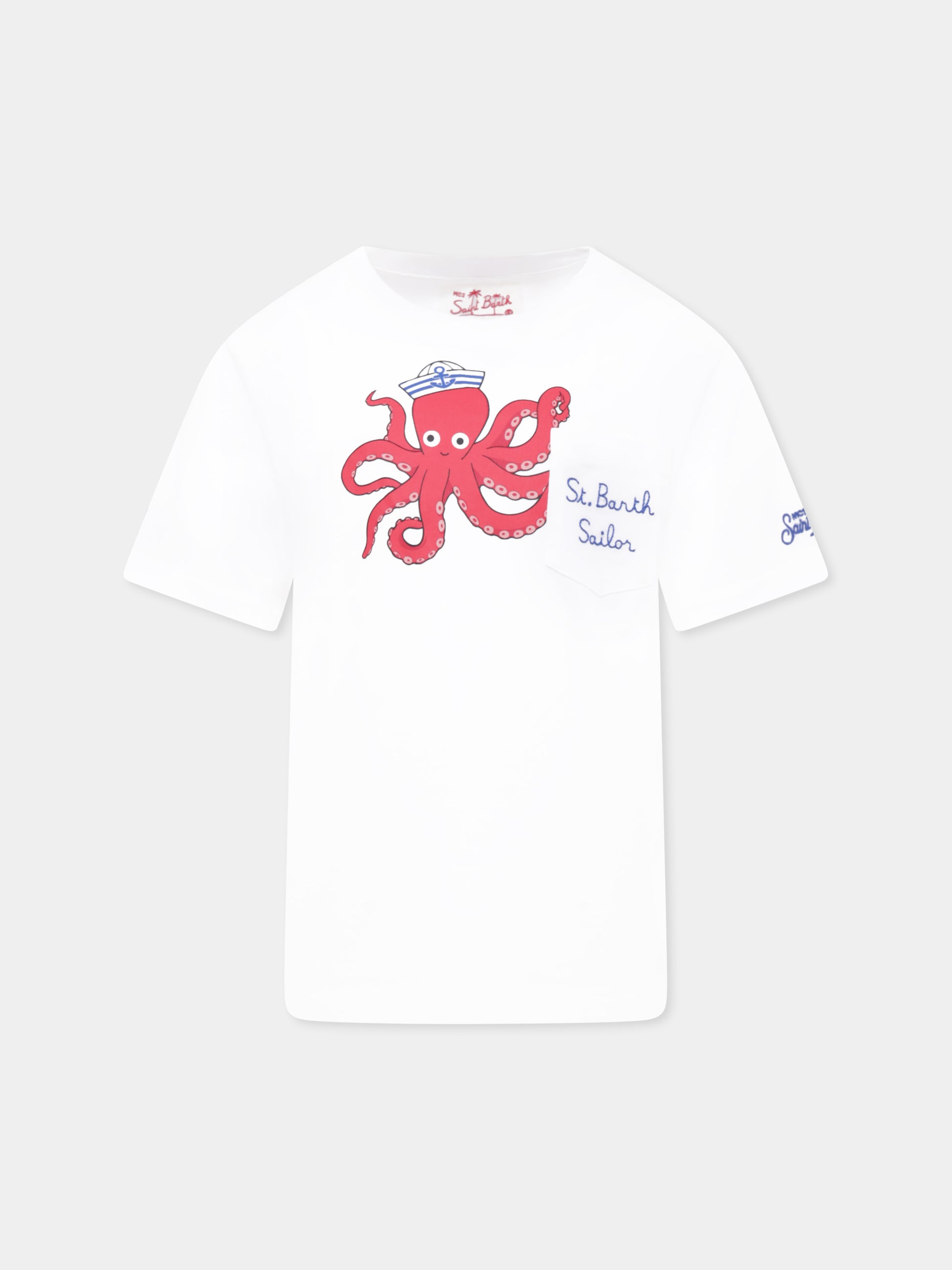 Colore: Bianco Descrizione: T-shirt bianca in cotone, a maniche corte, con girocollo a costine e tasca sul petto. È decorata con stampa polpo sulla parte anteriore e con logo ricamato sul petto e sulla manica. Dettagli: 100% Cotone. Lavare a 30°C.