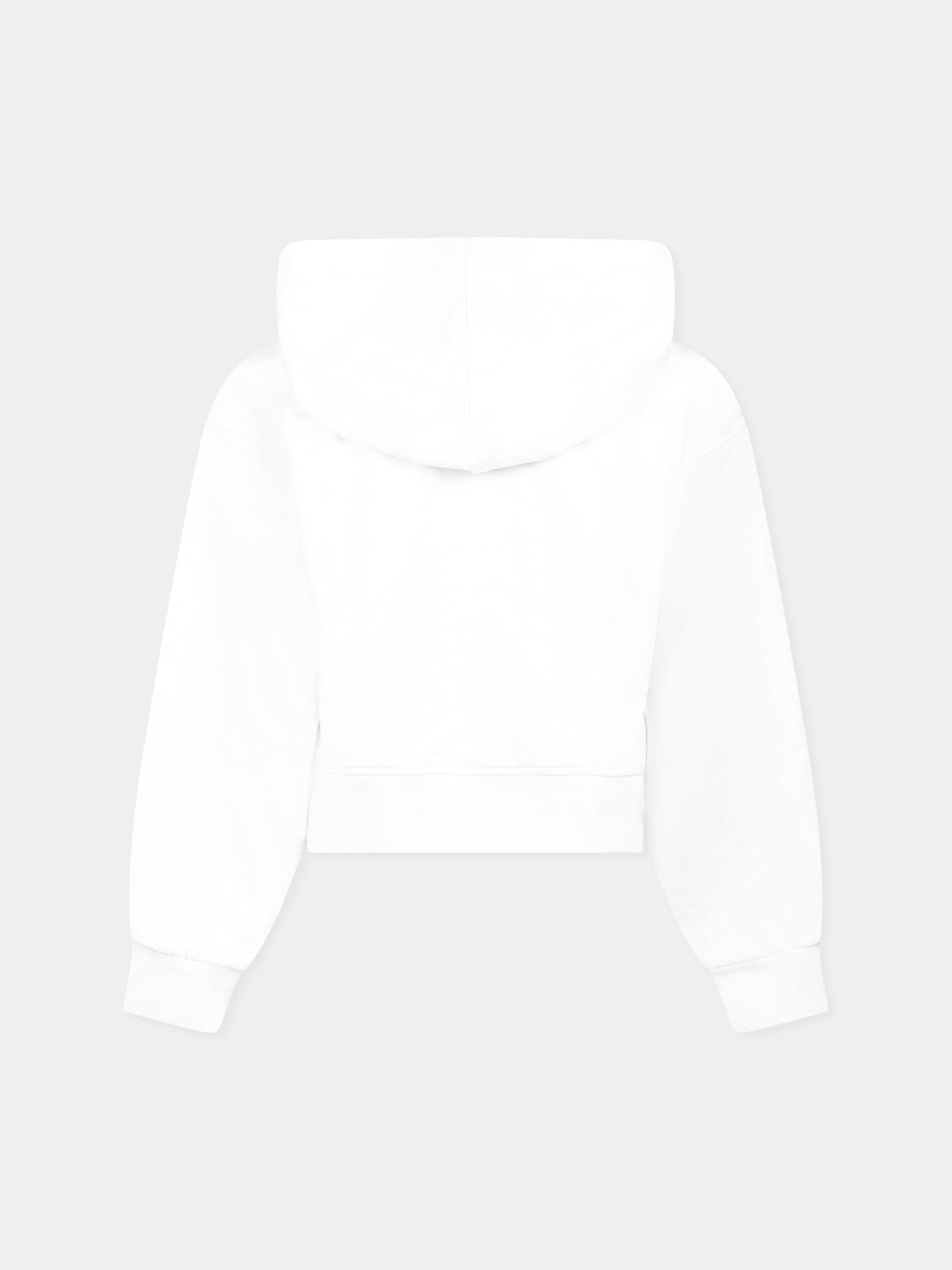 Felpa crop bianca per bambina con logo e strass