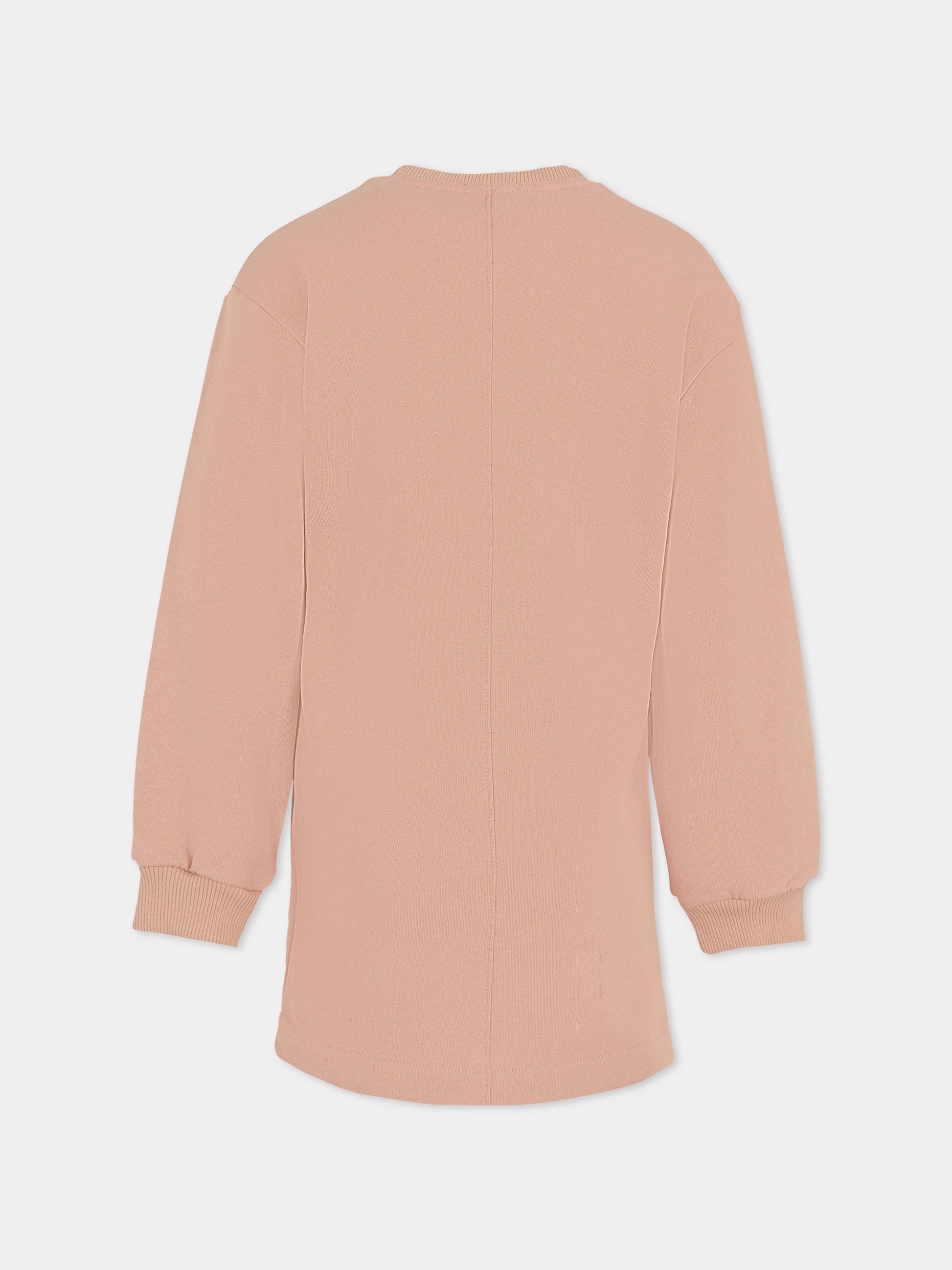 Colore: Rosa Descrizione: Vestito rosa in cotone garzato, a maniche lunghe, con girocollo e polsini a costinee orlo asimmetrico. È decorato con logo imbottito a rilievo sulla parte anteriore. Made in Italy Dettagli: 100% Cotton. Lavare a 30°C.