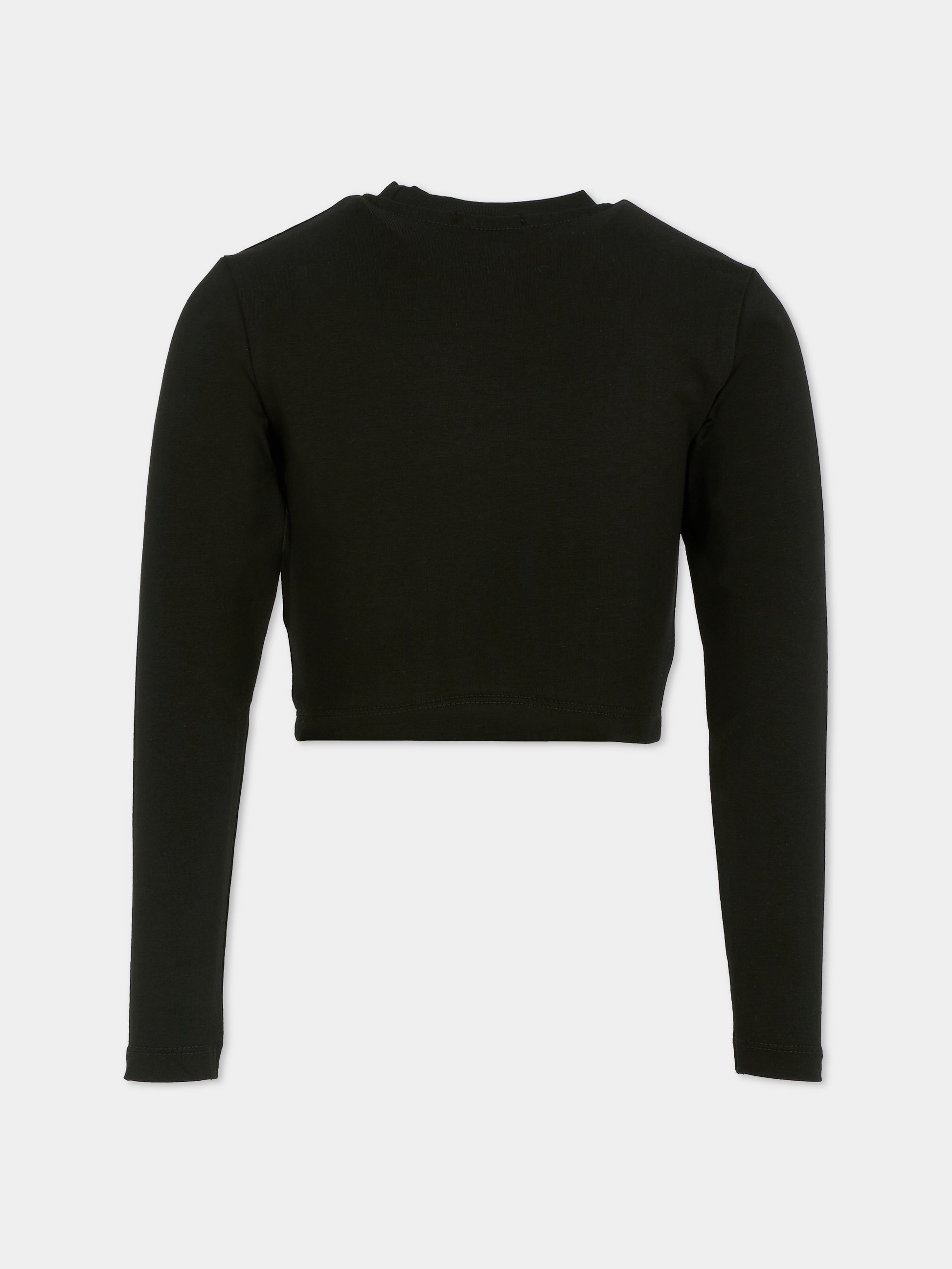 T-shirt crop nera per bambina con logo
