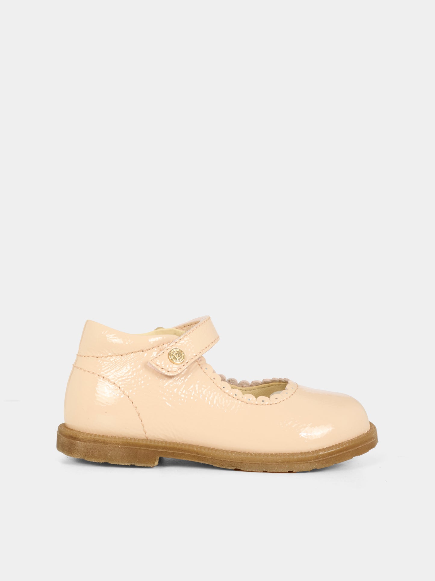 Colore: Rosa Descrizione: Ballerine rosa con suola in gomma marrone, chiusura con velcro sulla parte superiore. Sono decorate con logo. Made in Italy Dettagli: 100%Pelle.
