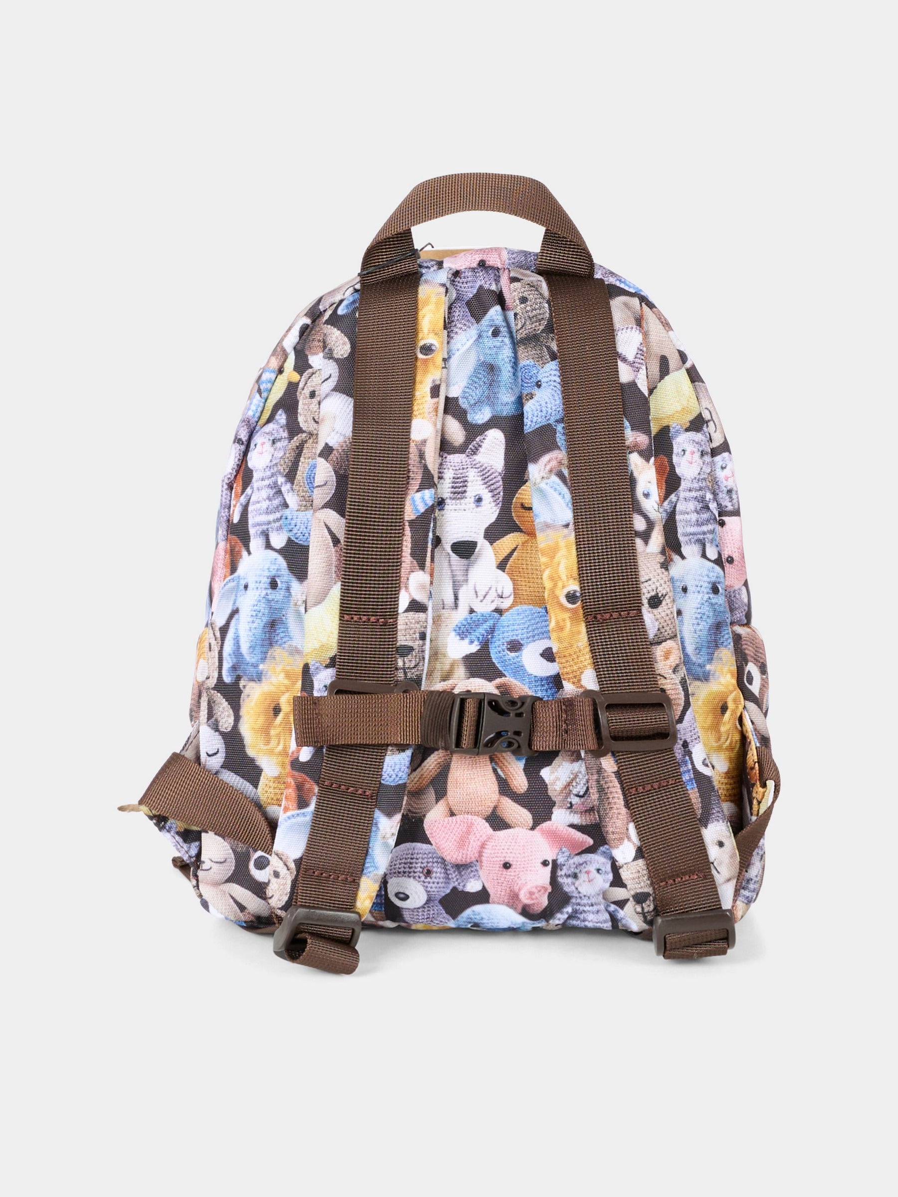 Colore: Multicolor Descrizione: Zaino multicolor in poliestere riciclato, con manico, chiusura superiore con zip, tasca frontale con zip e spallacci regolabili con fibbia a scatto. È decorato con stampa peluche all-over. Dimensioni (L x A x P): 29cm x25cm x9cm Dettagli: 100% Poliestere riciclato.