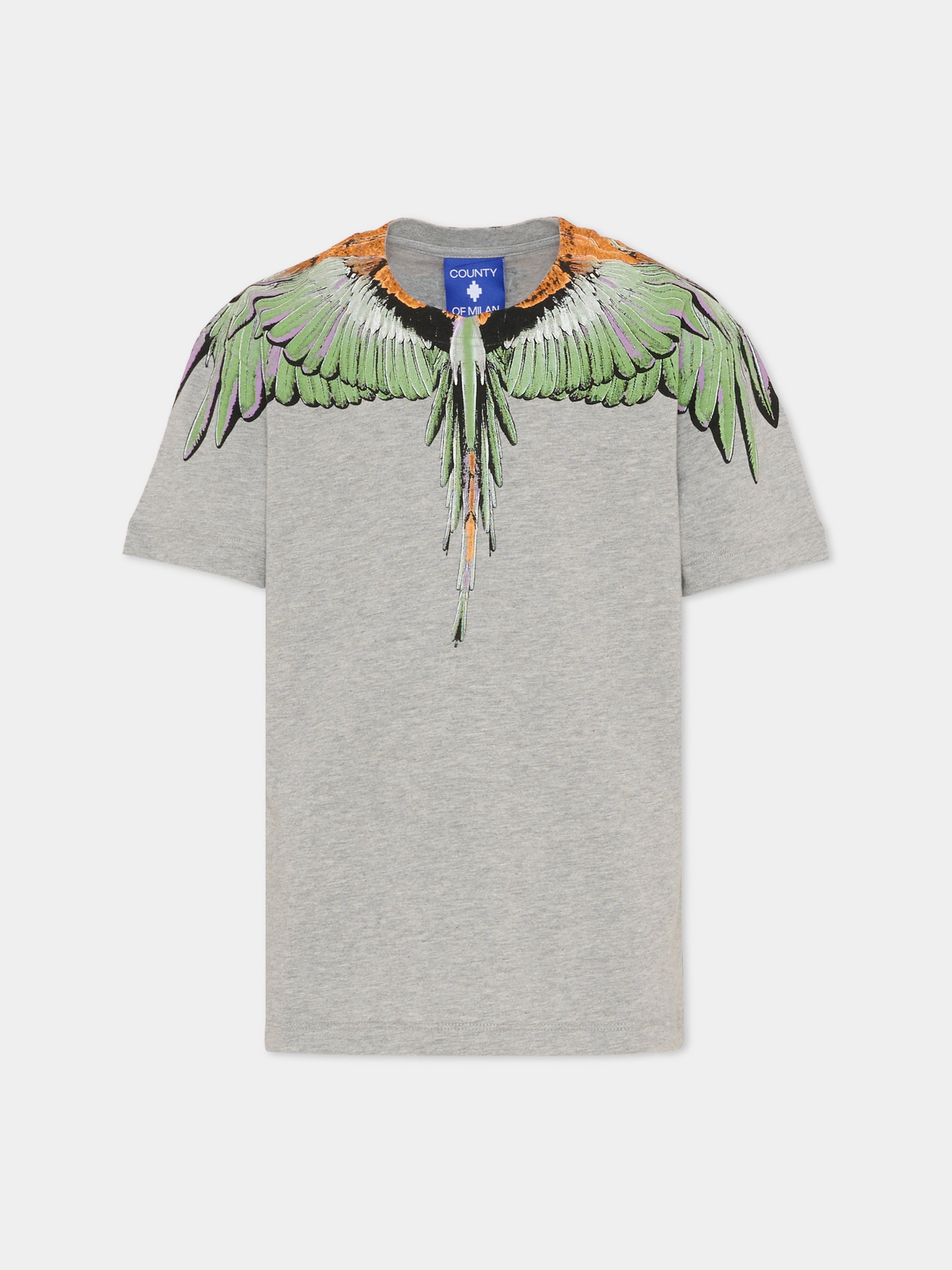 T-shirt grigia per bambino con ali multicolor