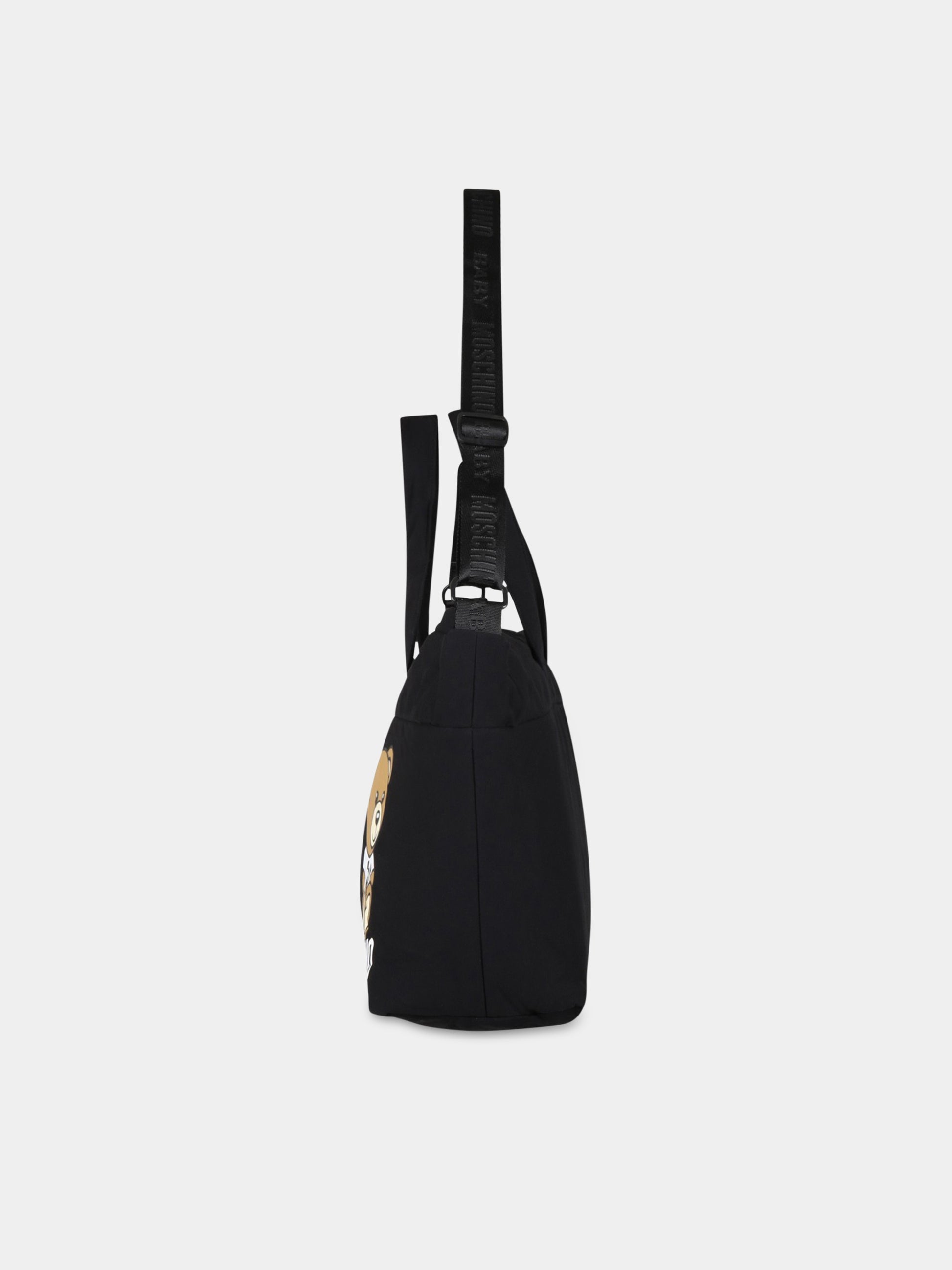 Colore: Nero Descrizione: Borsa mamma nera in cotone, con manici e chiusura con zip sulla parte superiore e fasciatoio interno. È decorata con Teddy Bear e logo bianco sulla parte laterale e patch logato sulla parte anteriore. 62 x 37 x 18 cm. Dettagli: 95%Cotone. 5%Elastan. Lavare a 30°C.