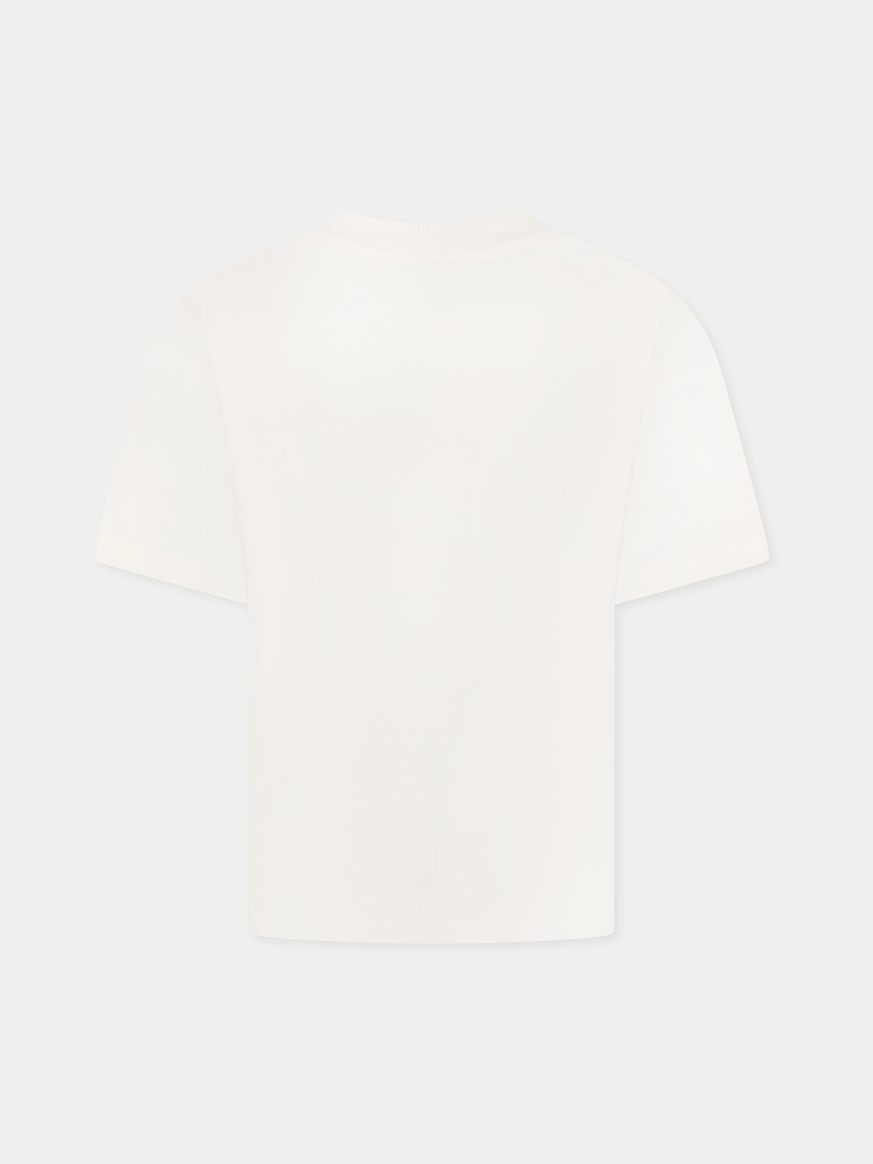 Colore: Avorio Descrizione: T-shirt avorio in cotone organico, con maniche corte e girocollo a costine. È decorato con stampa sciarpa sulla parte anteriore e logo ricamato sul petto. Dettagli: 100% Cotone organico. Lavare a 40°C.