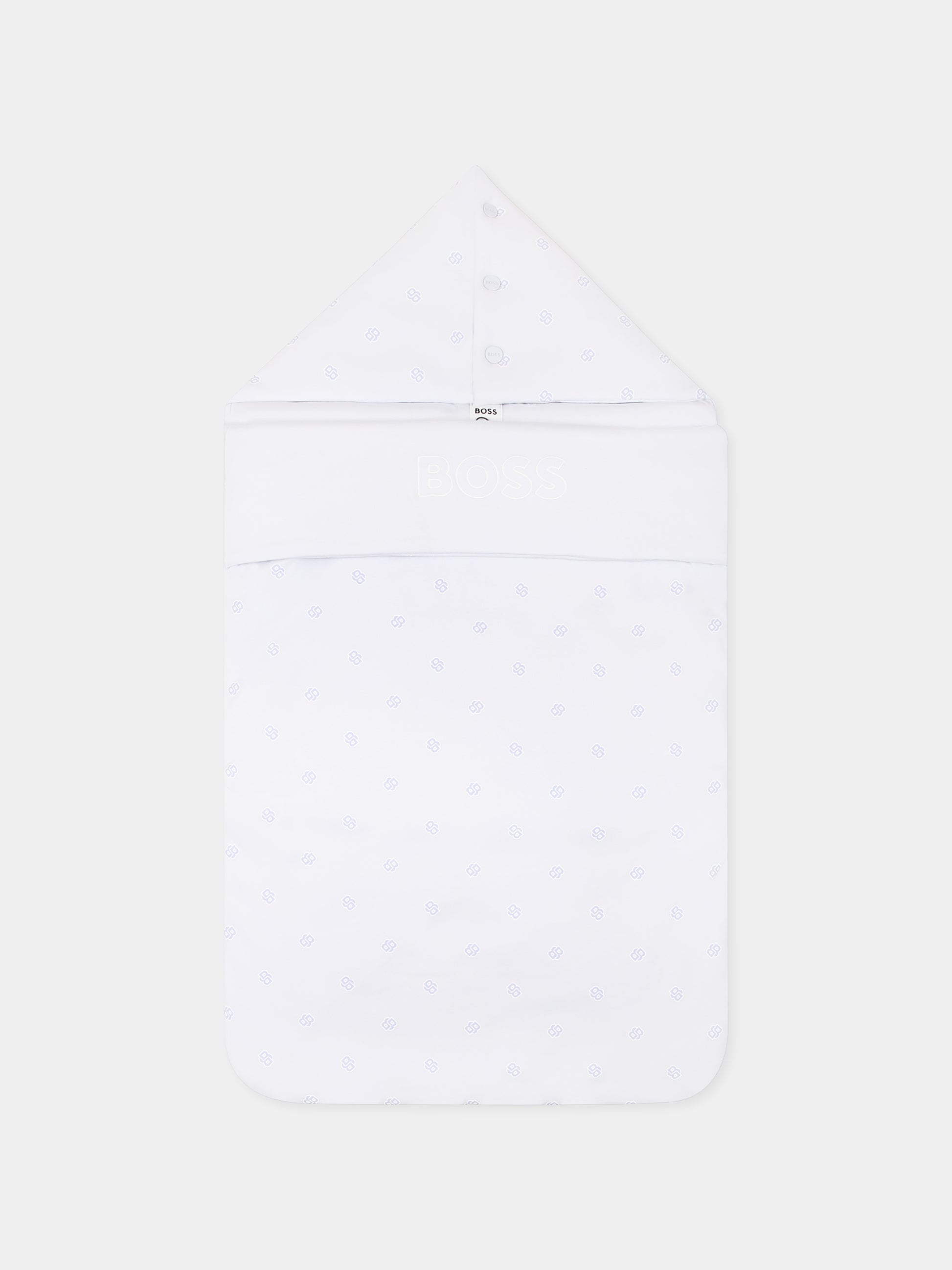 Colore: Celeste Descrizione: Sacco nanna celeste imbottito, con chiusura laterale con zip e cappuccio con bottoni automatici; realizzato con cotone organico. È decorato con logo BB all-over e logo ricaamto sulla parte anteriore. Dimensioni (L x A): 42cm x80cm Dettagli: 100% Cotone organico. Lavare a 30°C.