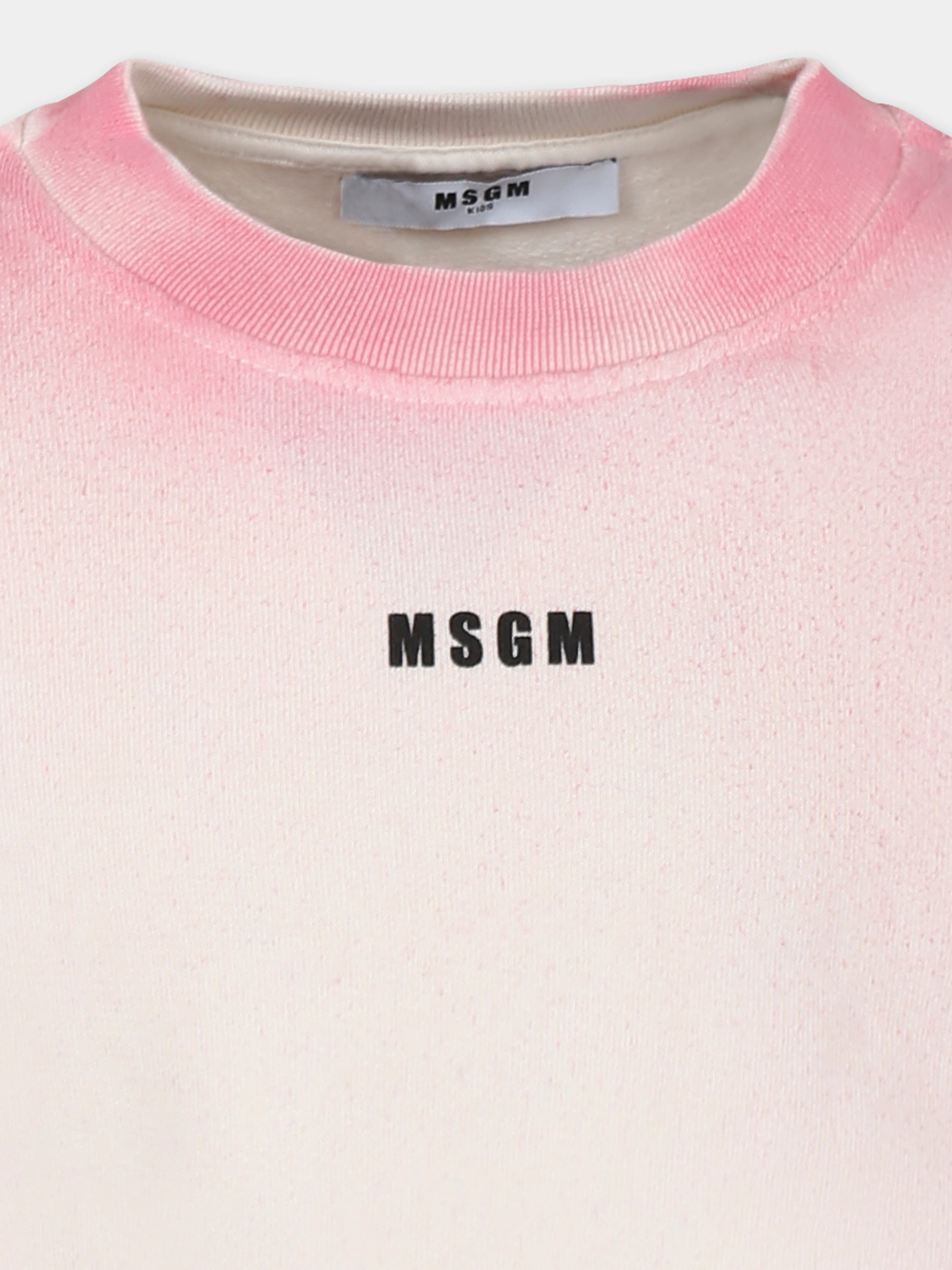 Colore: Rosa Descrizione: Felpa crop rosa tie-dye, in cotone garzato, a maniche lunghe, con girocollo, polsini e orlo a costine. È decorata con logo MSGM nero sulla,parte anteriore e patch logata sulla parte posteriore. Dettagli: 100% Cotone. Lavare a 30°C.