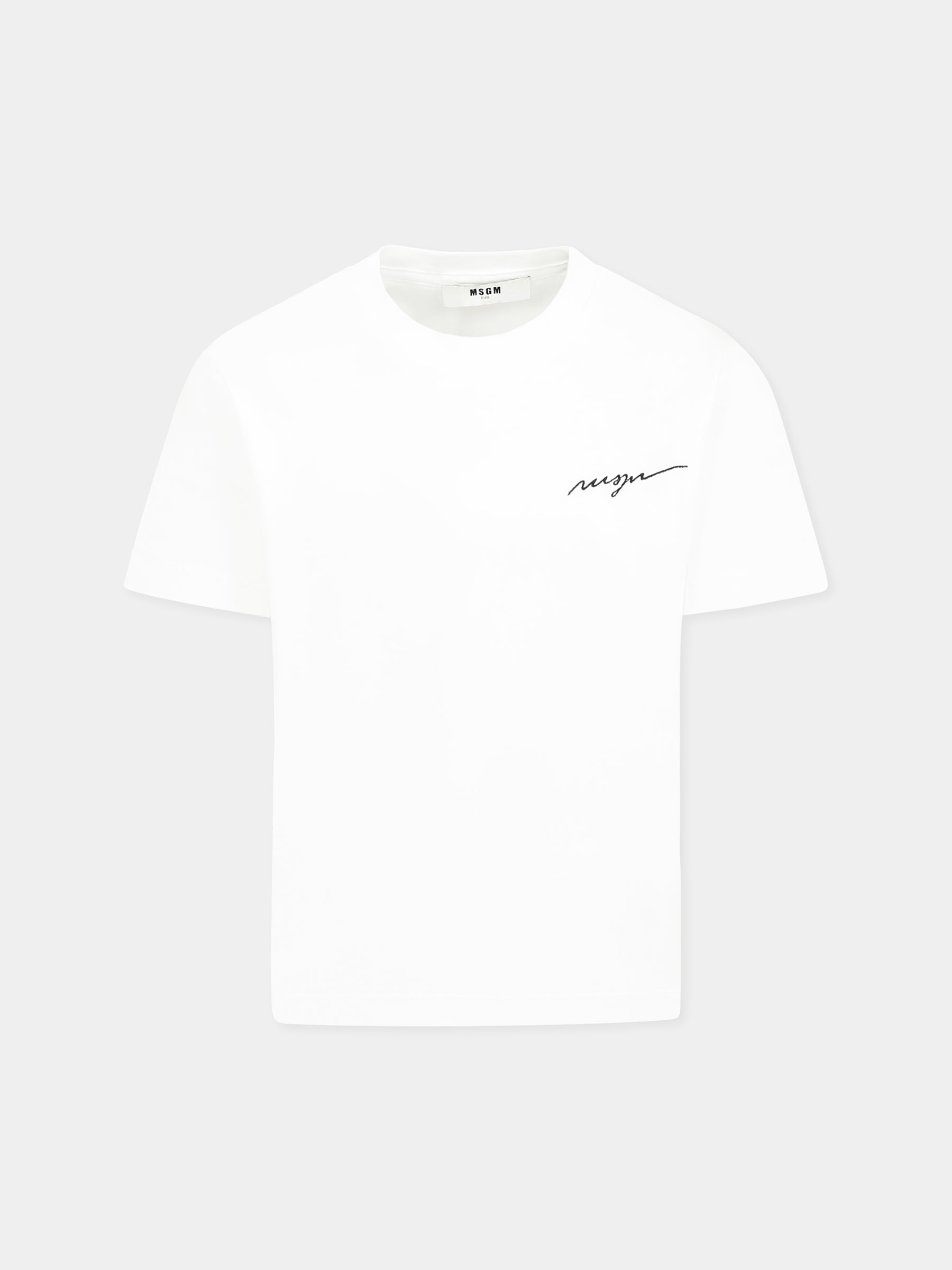 Colore: Bianco Descrizione: T-shirt bianca in cotone, con maniche corte e girocollo a costine. È decorata con logo MSGM ricamato sul petto. Made in Italy Dettagli: 100% Cotone. Lavare a 30°C.