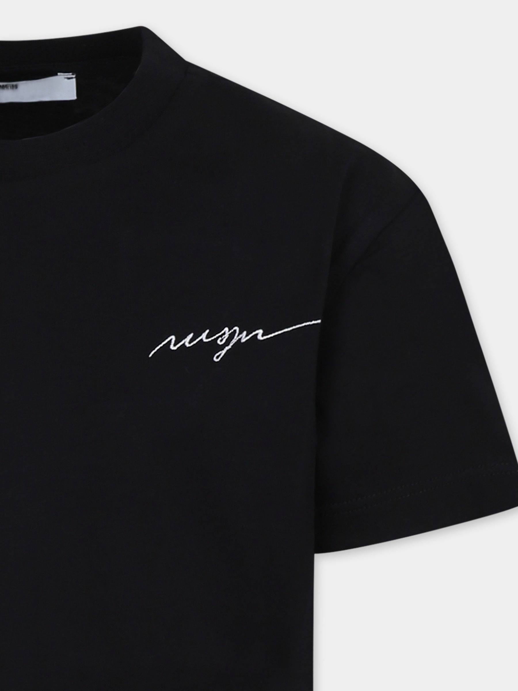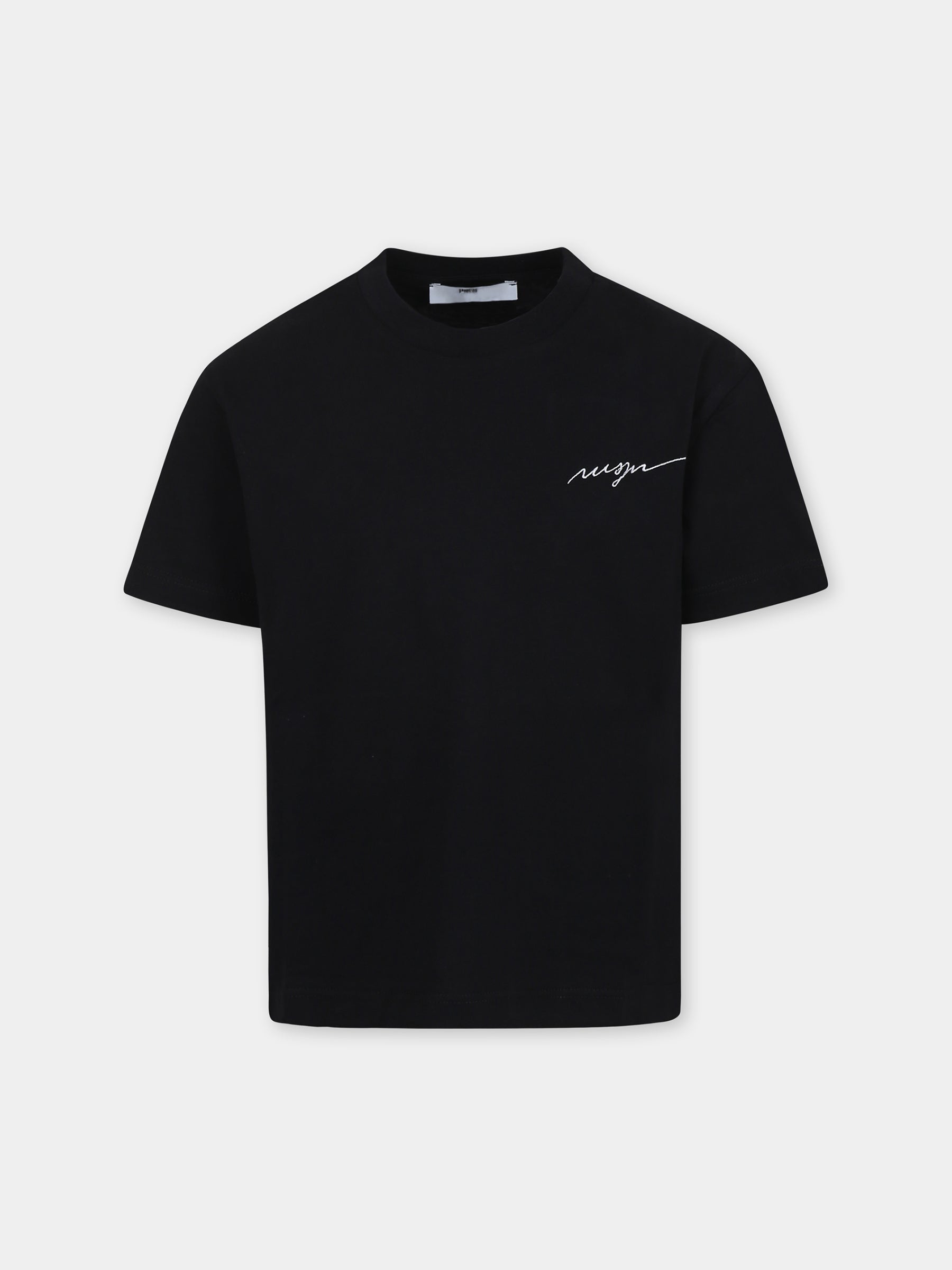 Colore: Nero Descrizione: T-shirt nera in cotone, con maniche corte e girocollo a costine. È decorata con logo MSGM ricamato sul petto. Made in Italy Dettagli: 100% Cotone. Lavare a 30°C.